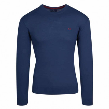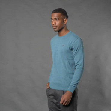 Signature Πουλόβερ Μπλε Ρουά Round Neck in Cotton (Modern Fit)