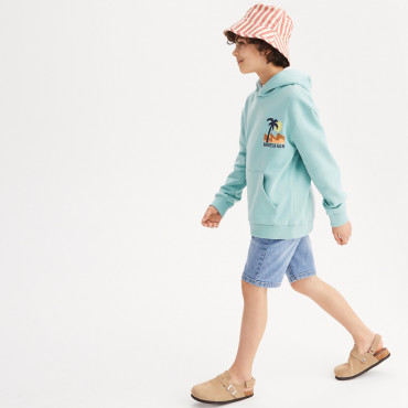 Φούτερ από φανέλα με κουκούλα και μοτίβο σκέιτ στο στήθος