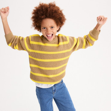 Πλεκτό ριγέ πουλόβερ με στρογγυλή λαιμόκοψη