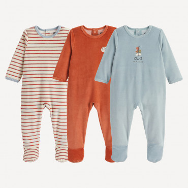 Σετ 3 ολόσωμες πιτζάμες από βελούδο