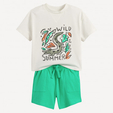 Σετ 2 βαμβακερές πιτζάμες με σορτς και μοτίβο μπάσκετ