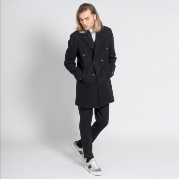 Prince Oliver Ημίπαλτο Pea Coat Μαύρο (Modern Fit)