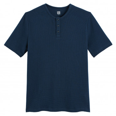 Κοντομάνικη μπλούζα με κουμπιά στη λαιμόκοψη