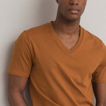 Κοντομάνικη μπλούζα με V από οργανικό βαμβάκι
