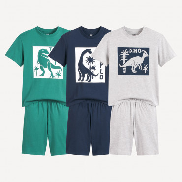 Σετ 3 βαμβακερές πιτζάμες με σορτς και μοτίβο δεινόσαυρους