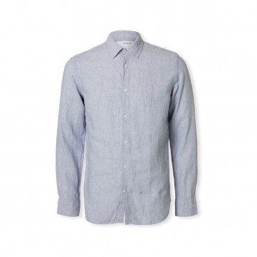 Πουκάμισο με μακριά μανίκια Selected Regkylian-Linen Shirt - Blue Fog/White