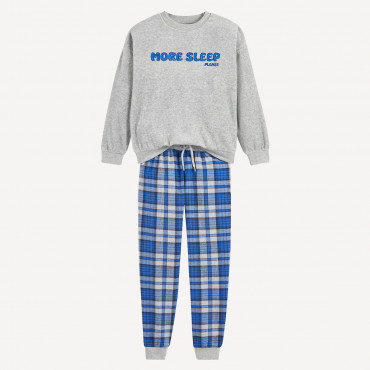 Πιτζάμα με μήνυμα και παντελόνι με καρό σχέδιο