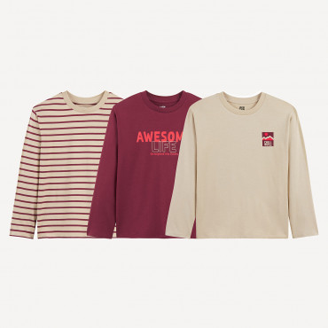 Σετ 3 μακρυμάνικα T-shirt με γιακά tunisien