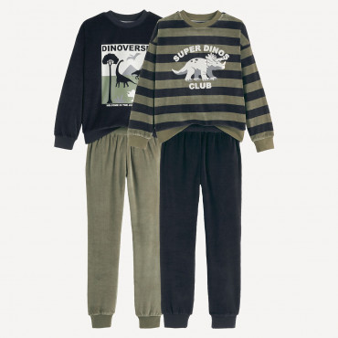 Σετ 2 βελουτέ πιτζάμες με σχέδια δεινόσαυρους
