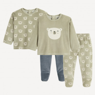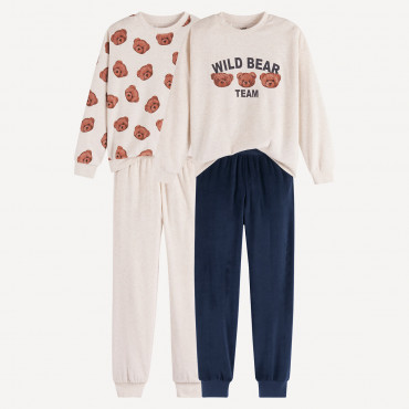 Σετ 2 βελουτέ πιτζάμες με σχέδιο αρκουδάκια