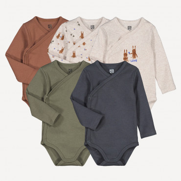 Σετ 5 βρεφικά κορμάκια με μακριά μανίκια