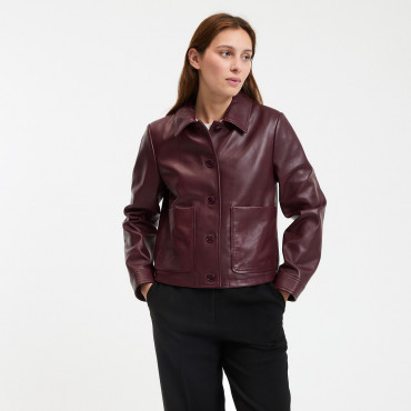 Κοντό μπουφάν από δέρμα με κουμπωτό κλείσιμο