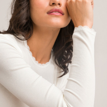 Μπλούζα με στρογγυλή λαιμόκοψη και δαντέλα