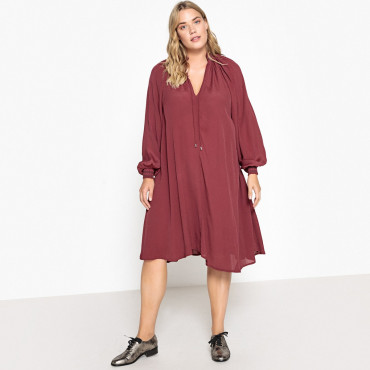 Μακρυμάνικο εβαζέ φόρεμα με V λαιμόκοψη