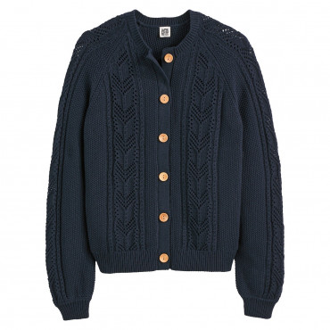 Ζακέτα με αζούρ πλέξη από βαμβακερό νήμα