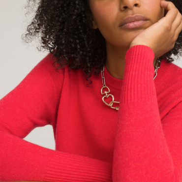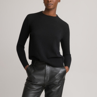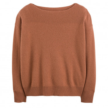 Λεπτό πλεκτό με λαιμόκοψη χαμόγελο από κασμίρι