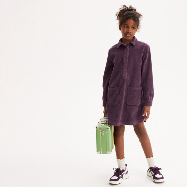 Ίσιο μακρυμάνικο φόρεμα από βελούδο κοτλέ