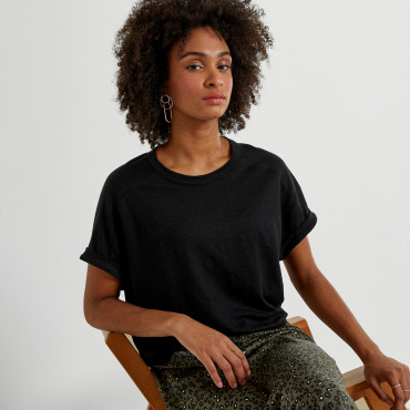 Λινή μπλούζα με στρογγυλή λαιμόκοψη
