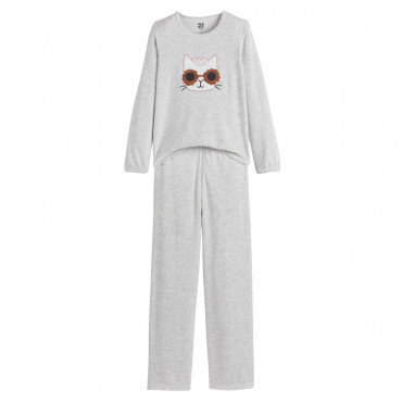 Βελουτέ πιτζάμα με μοτίβο γάτα