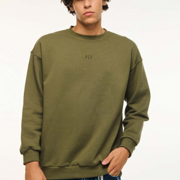 Ανδρικό Φούτερ με κέντημα - BASIC - OLIVE