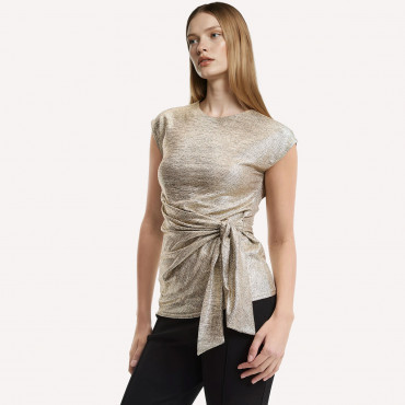 Λαμέ μπλούζα με ντραπέ όψη και κοντά μανίκια