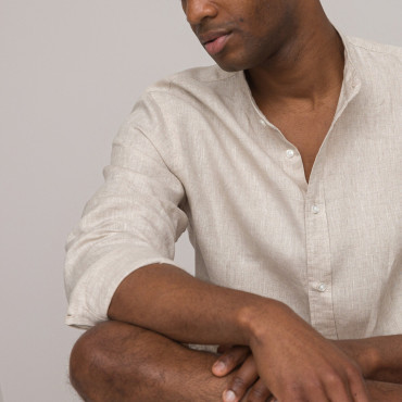 Μακρυμάνικο λινό πουκάμισο με μάο γιακά