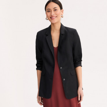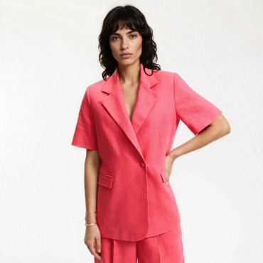 Μακρύ ίσιο σακάκι από λινό με κοντά μανίκια
