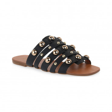 Σανδάλια χωρίς τακούνι Miss Unique UNIQUE OURO CALF PRETO BORCHIE